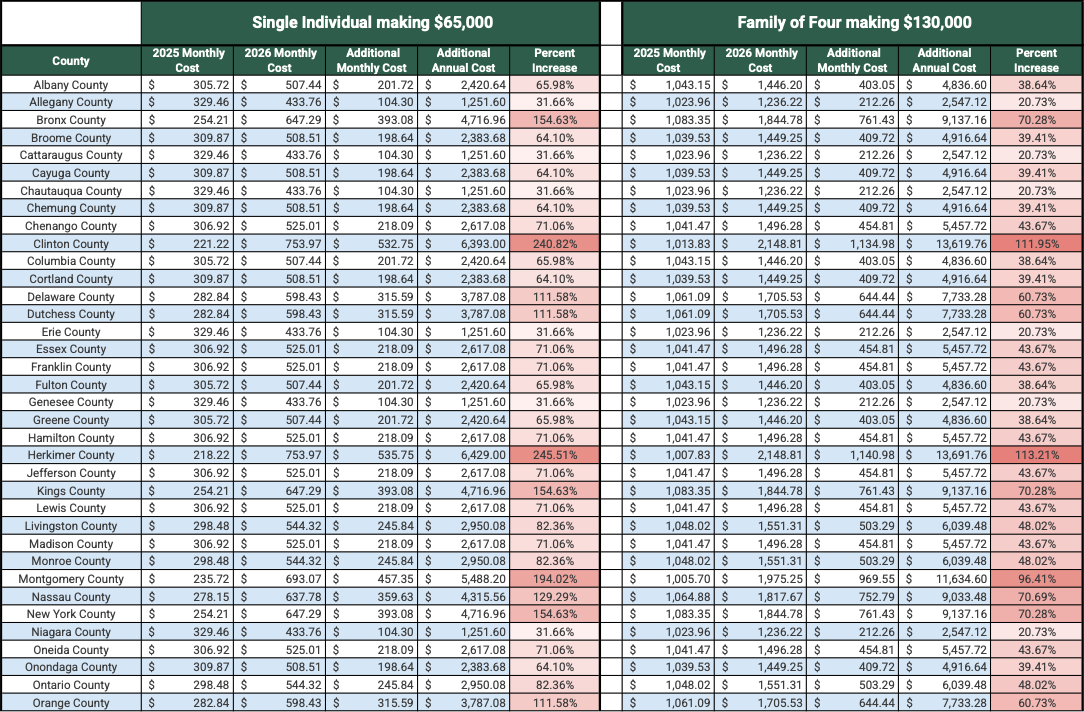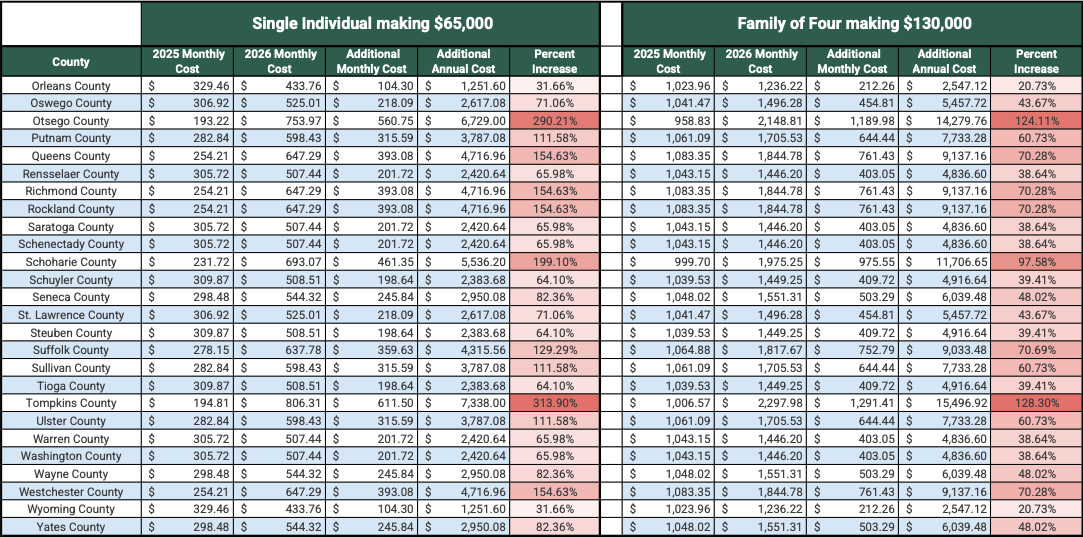Costs calculated from New York State Department of Health website – https://nystateofhealth.ny.gov/individual/calculateFinance